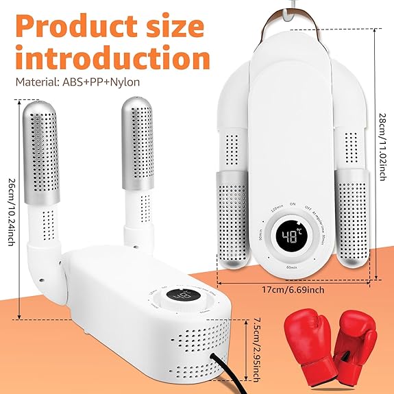 - ⏱️ Adjustable Timer: Customize drying time to match your footwear (e.g., quick dry for sneakers, longer for thick boots) for hassle-free use.