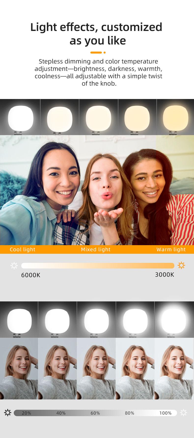 Multiple Light Modes: 3000K to 6500K 5 color temperatures, 5 adjustable brightness, high color rendering index CRI 90+, light for phone equivalent to professional photography lighting to meet a variety of light requirements for photography·Multi-function Phone Light: Not only does it provide lighting when taking photos, but it also allows you to use the mirror to touch up your makeup and control your facial expressions at any time, ensuring that every photo is truly stunning·Adjustable Portable Size: 360° rotation, 270° folding, retractable design, all-around complementary light coverage to ensure full illumination, mini size light for video recording easy to put into the pocket, convenient to carry around·No Scratches On Screen: Unlike the clip design, The selfie light attaches securely to the back of your mobile phone to avoid scratching the screen. The included magnetic ring can be mounted on Android phones and computers·Ultra-long Battery Life: 850mAh rechargeable battery, 90 minutes of use at 100% brightness, iphone light ideal for filming,Live Streaming, videography and content creation, with additional Type-C charging cable (adapter not included) Report an